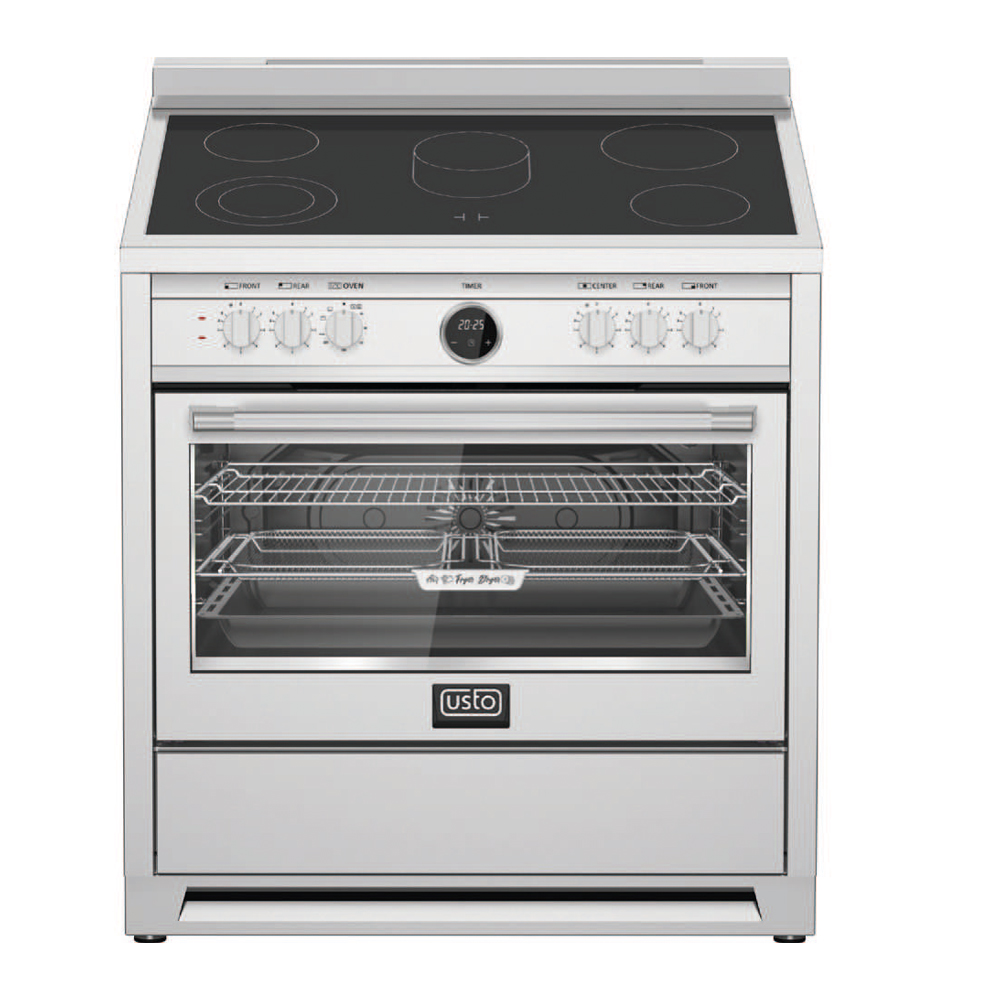 90x60 Professional Freestanding Cooker 5 Zone Vitroceramic Top Table (1x Oval Dual – 1x Dual – 3x Single) Retro Digital Timer